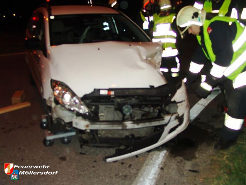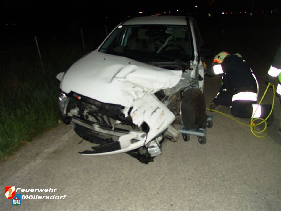 Beim Eintreffen des Löschfahrzeuges der Feuerwehr Möllerdorf und der Erkundung, konnte an Florian Baden die Rückmeldung gegeben werden, dass keine Personen eingeklemmt sind und lediglich das verunfallte Fahrzeug im Auftrag der Polizei verkehrssicher abzustellen ist.