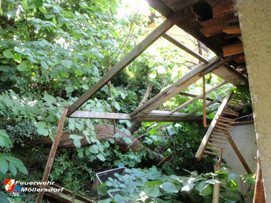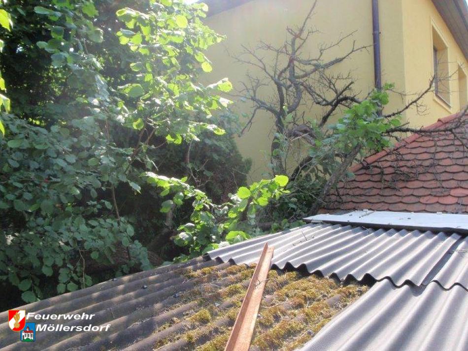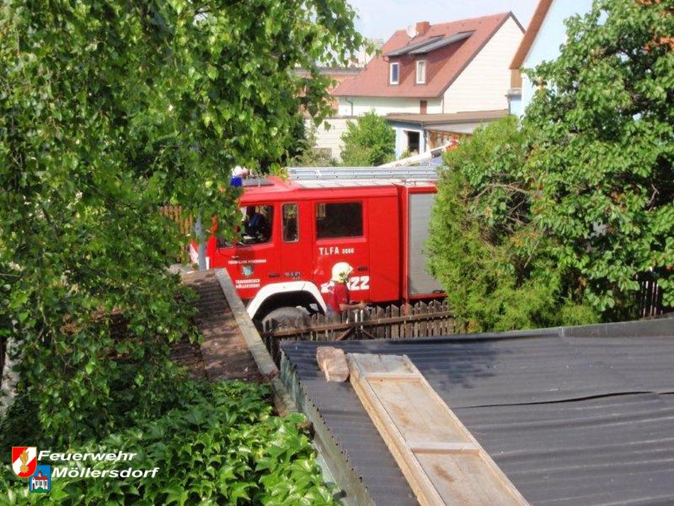 Am 03.06.2011 um 15:33 Uhr wurde die Feuerwehr Möllersdorf zu einen umgestürzten Baum alarmiert. Der schadhafte Baum stürzte auf das Garagendach und die Hausfassade des Nachbaranwesens! Um weiteren Schaden an der Fassade und am Dach zu verhindern wurde der Baum mit einer Leine gesichert mittels Motorkettensäge entfernt.