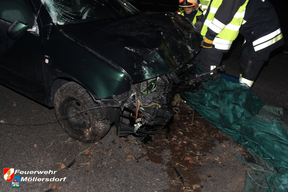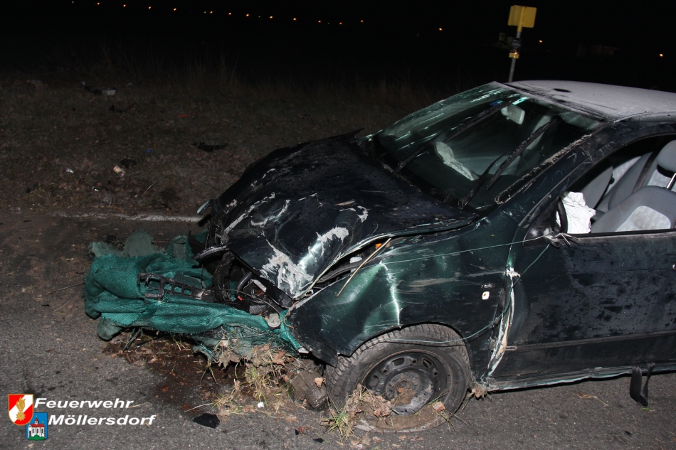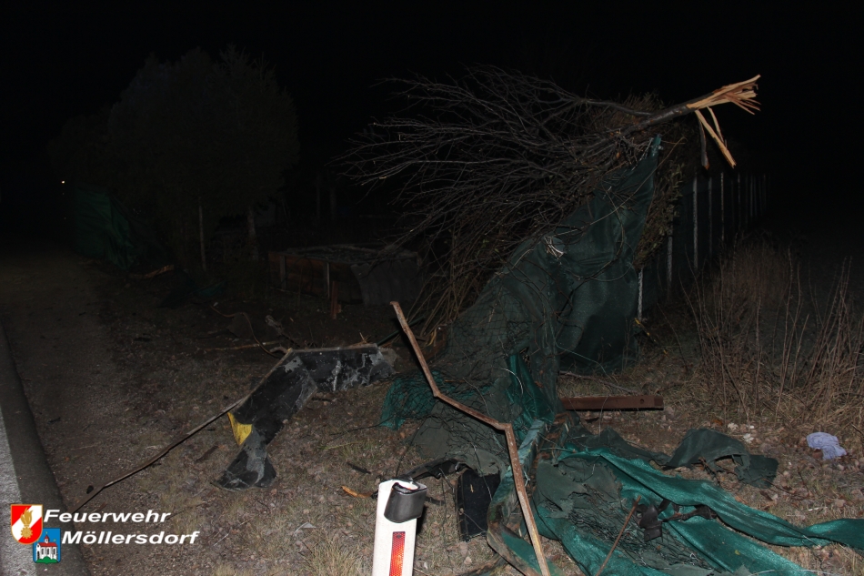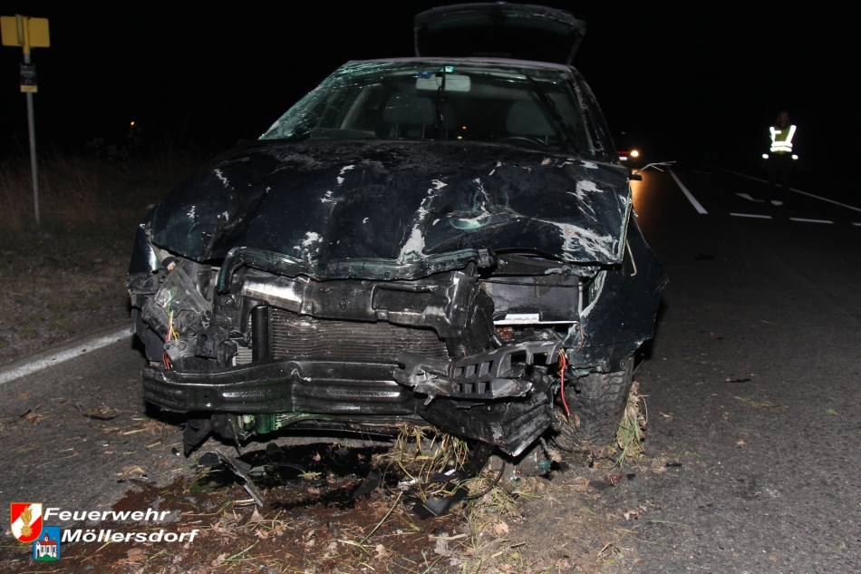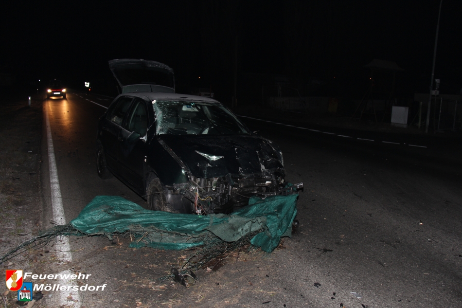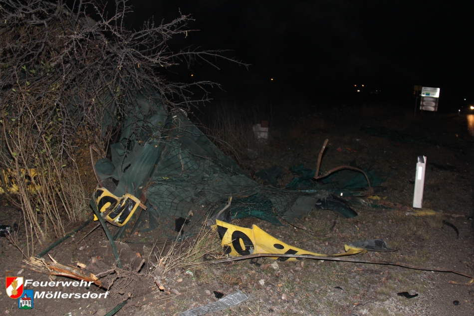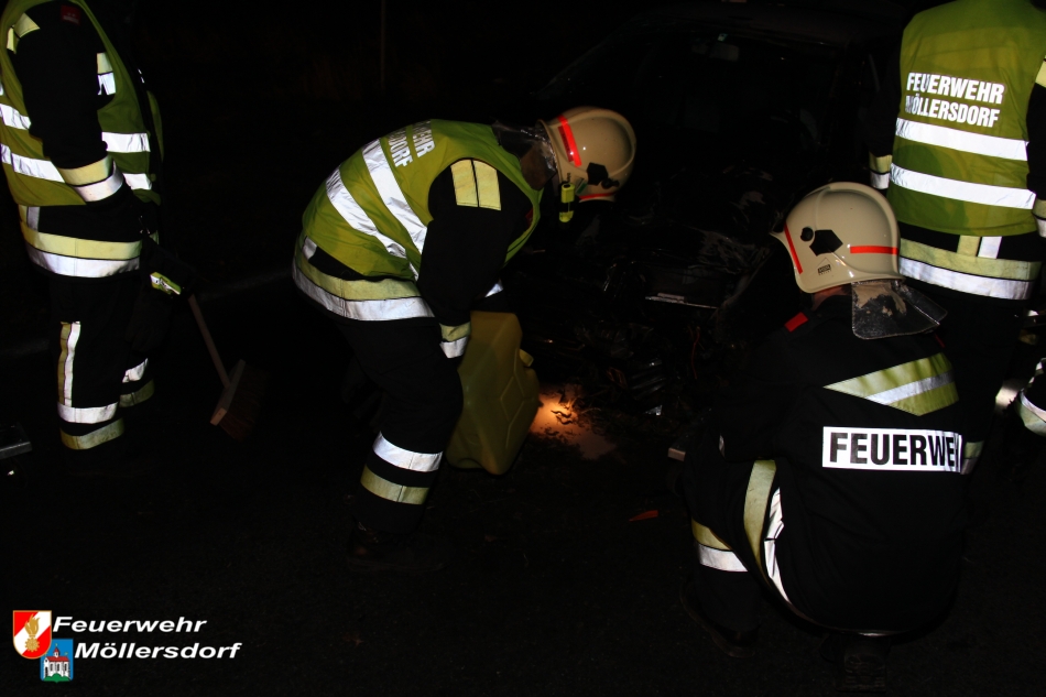 Beim Eintreffen der Feuerwehr war bereits die Straße durch eine Polizeistreife gesperrt. Die Feuerwehr Möllersdorf war mit dem Rüstlöschfahrzeug (RLFA) und dem Wechselladefahrzeug 1 mit Kran (WLFA1) vor Ort. Das verunfalllte Fahrzeug wurde an einer sicheren Stelle mittels Rangierroller verbracht und die Fahrbahn gereinigt. Nach ca 30 Minuten konnte wieder in das Feuerwehrhaus eingerückt werden und die Einsatzbereitschaft wiederhergestellt werden.