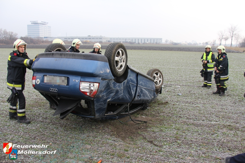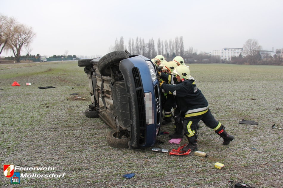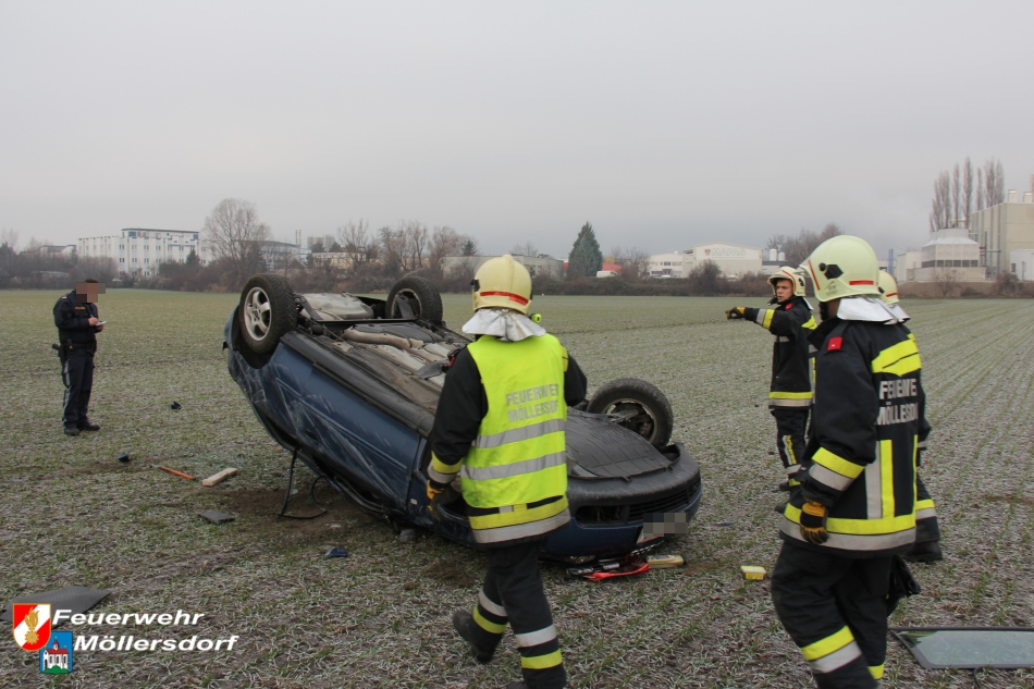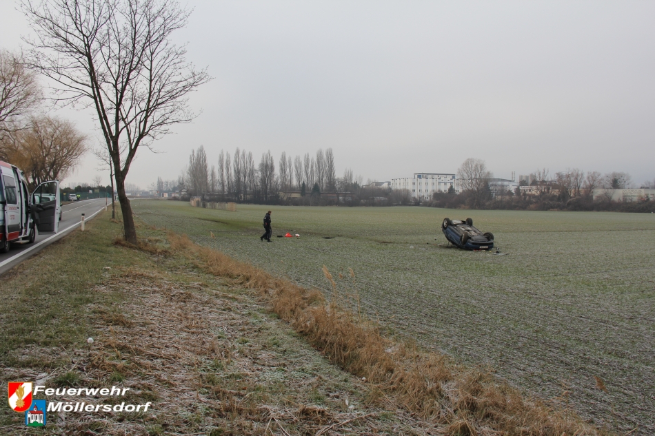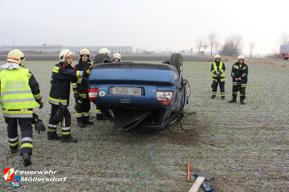 Am Vormittag des 01.01.2013 um 09:46 Uhr wurde die Feuerwehr Möllersdorf zu einem Verkehrsunfall auf der B212, Höhe Güttl-Teich, alarmiert. Ein von Baden kommender PKW kam wegen vermutlich zu hoher Geschwindigkeit ins Schleudern, überschlug sich mehrmals und kam im angrenzenden Feld auf dem Dach zu liegen. Der Lenker konnte sich selbst aus dem Fahrzeug befreien.