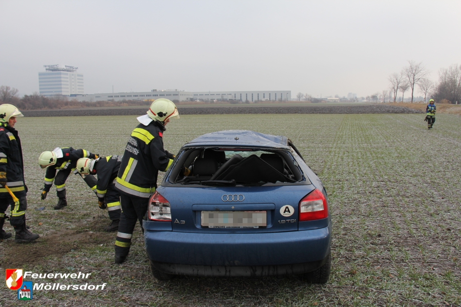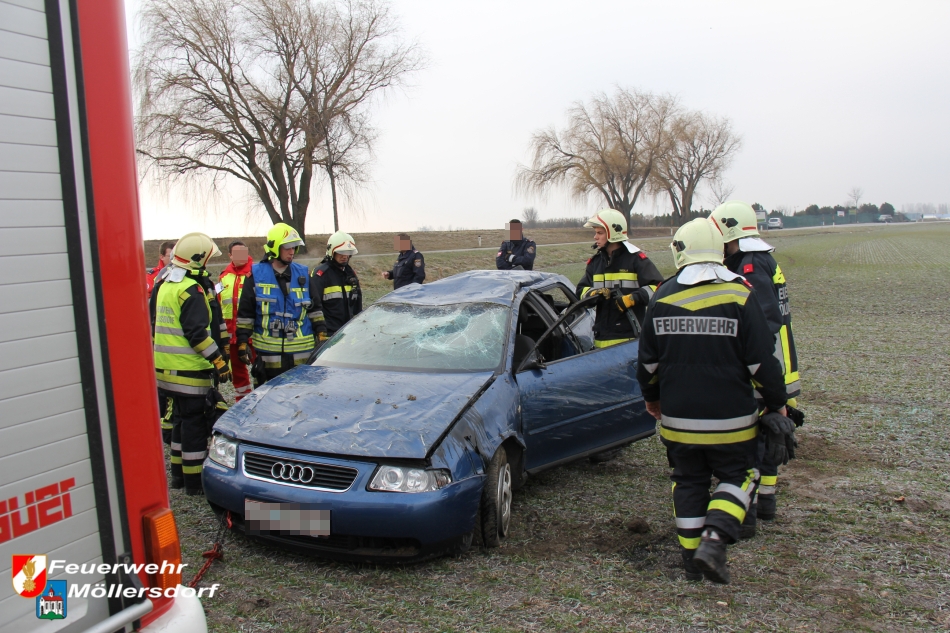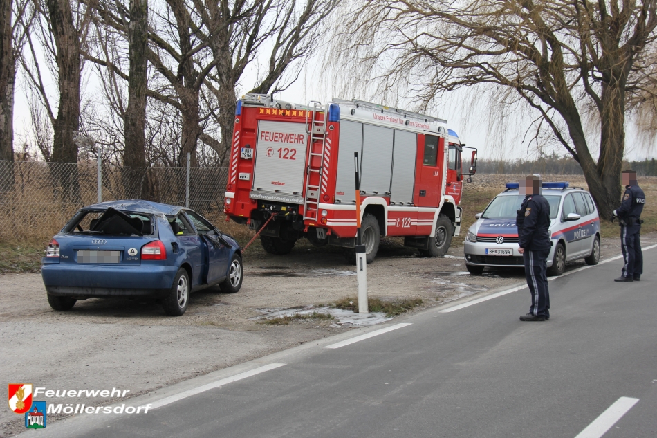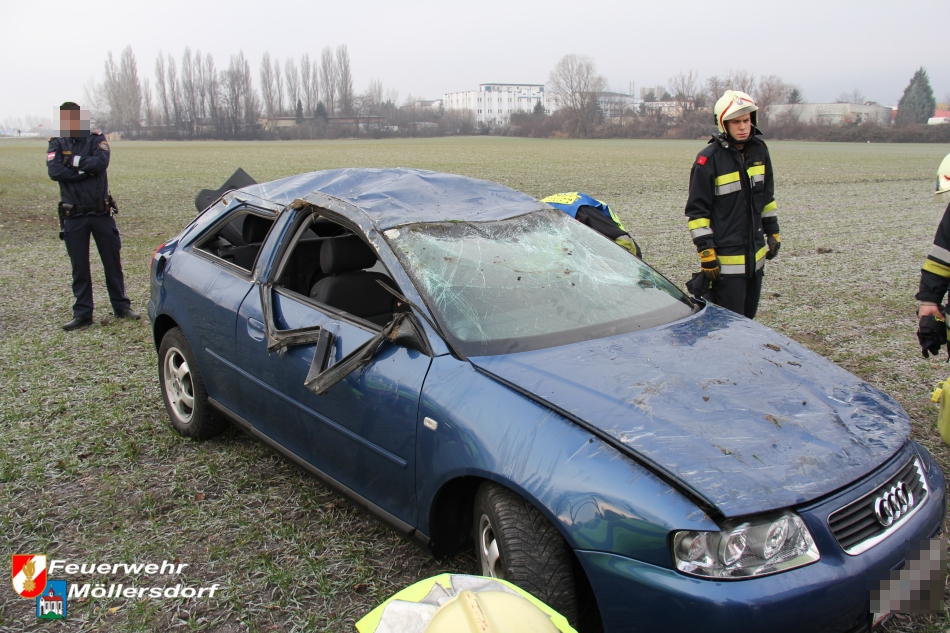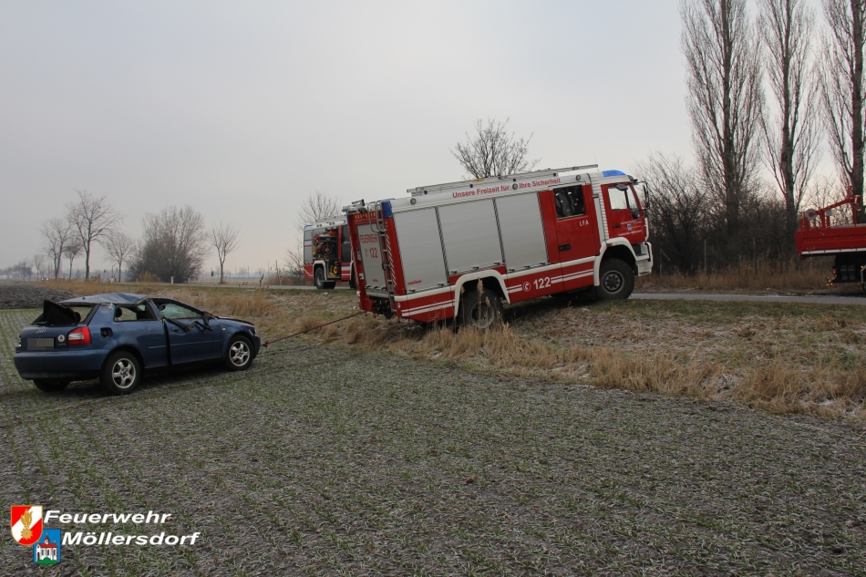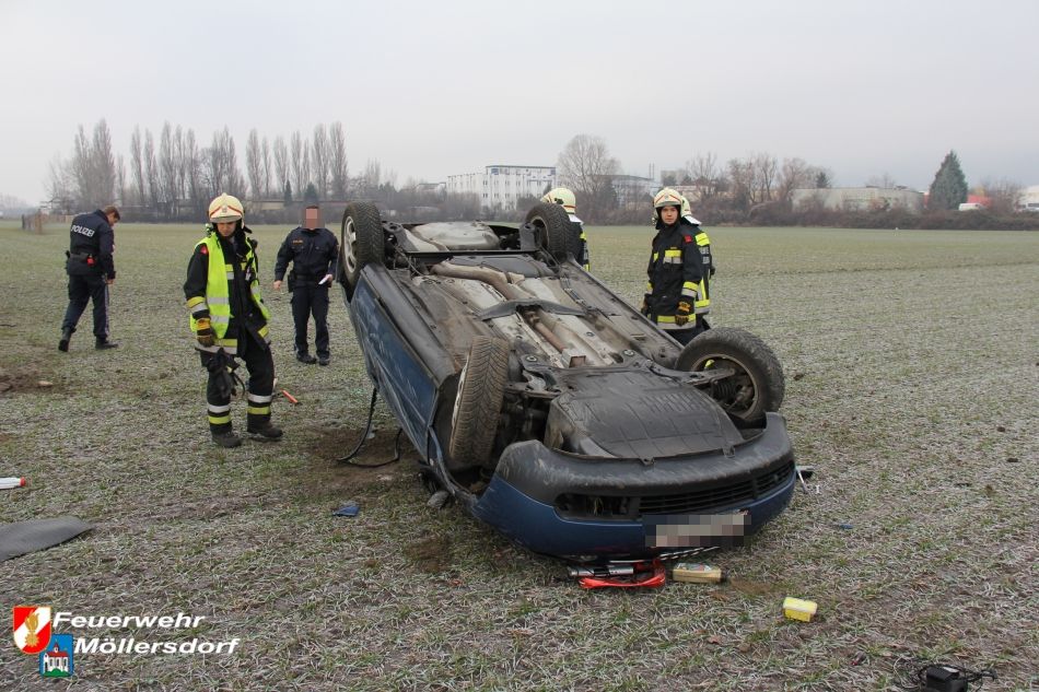 Am Vormittag des 01.01.2013 um 09:46 Uhr wurde die Feuerwehr Möllersdorf zu einem Verkehrsunfall auf der B212, Höhe Güttl-Teich, alarmiert. Ein von Baden kommender PKW kam wegen vermutlich zu hoher Geschwindigkeit ins Schleudern, überschlug sich mehrmals und kam im angrenzenden Feld auf dem Dach zu liegen. Der Lenker konnte sich selbst aus dem Fahrzeug befreien.