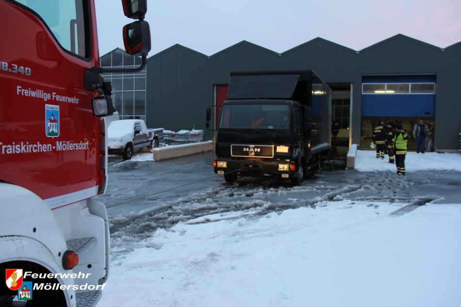 Am 14. Jänner 2013 um 16 Uhr wurde in einem Gärtnereibetrieb eine Bergung von 2 LKW durchgeführt. Durch die seit Weihnachten anhaltenden starken Regenfälle stieg das Grundwasser auf den Grundwiesenfeldern so stark an, dass die Drainagierung diese großen Mengen nicht entsprechend rasch abfließen ließ. Dadurch war der Grundwasserpegel im Gärtnereibetrieb bis auf das Erdniveau angestiegen und überflutete die Verladerampen.
