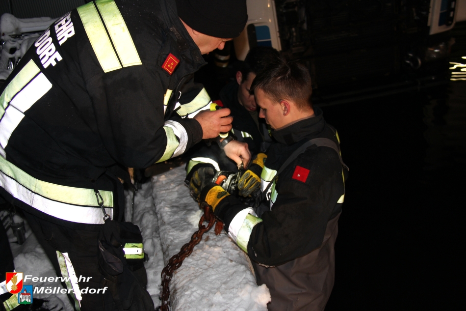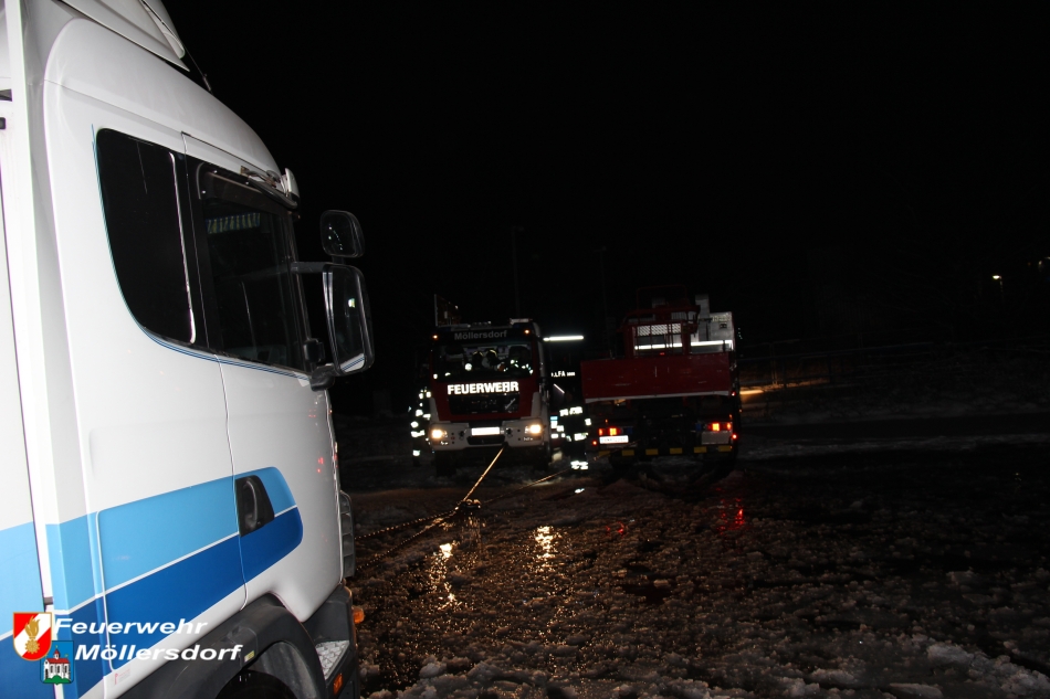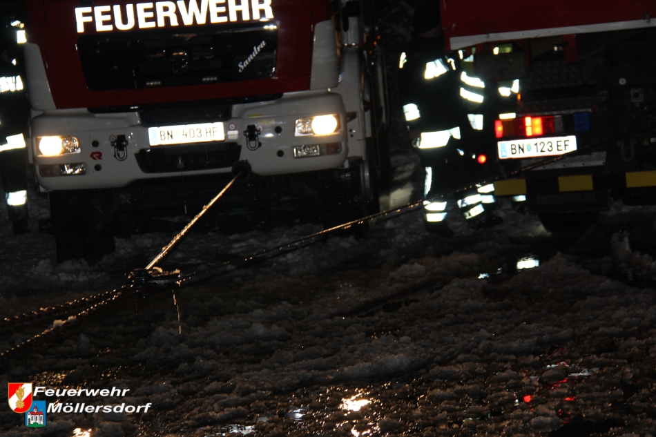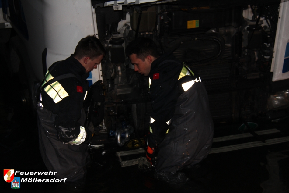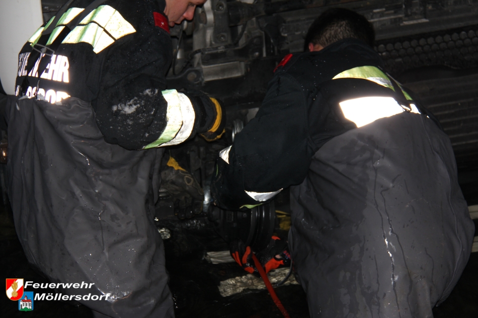 Die Feuerwehr Möllersdorf war mit 14 Mann, dem Kommandofahrzeug (KDO), dem Rüstlöschfahrzeug (RLFA) und dem Wechselladefahrzeug 1 (WLFA1) im Einsatz.