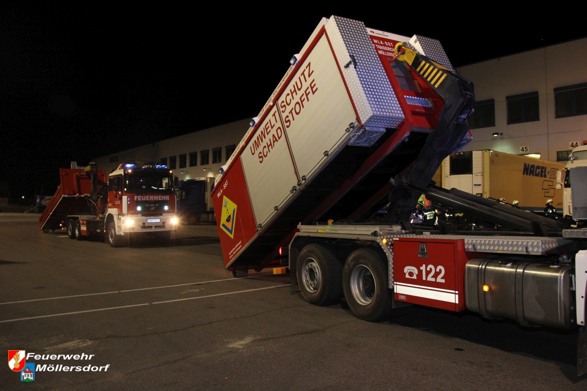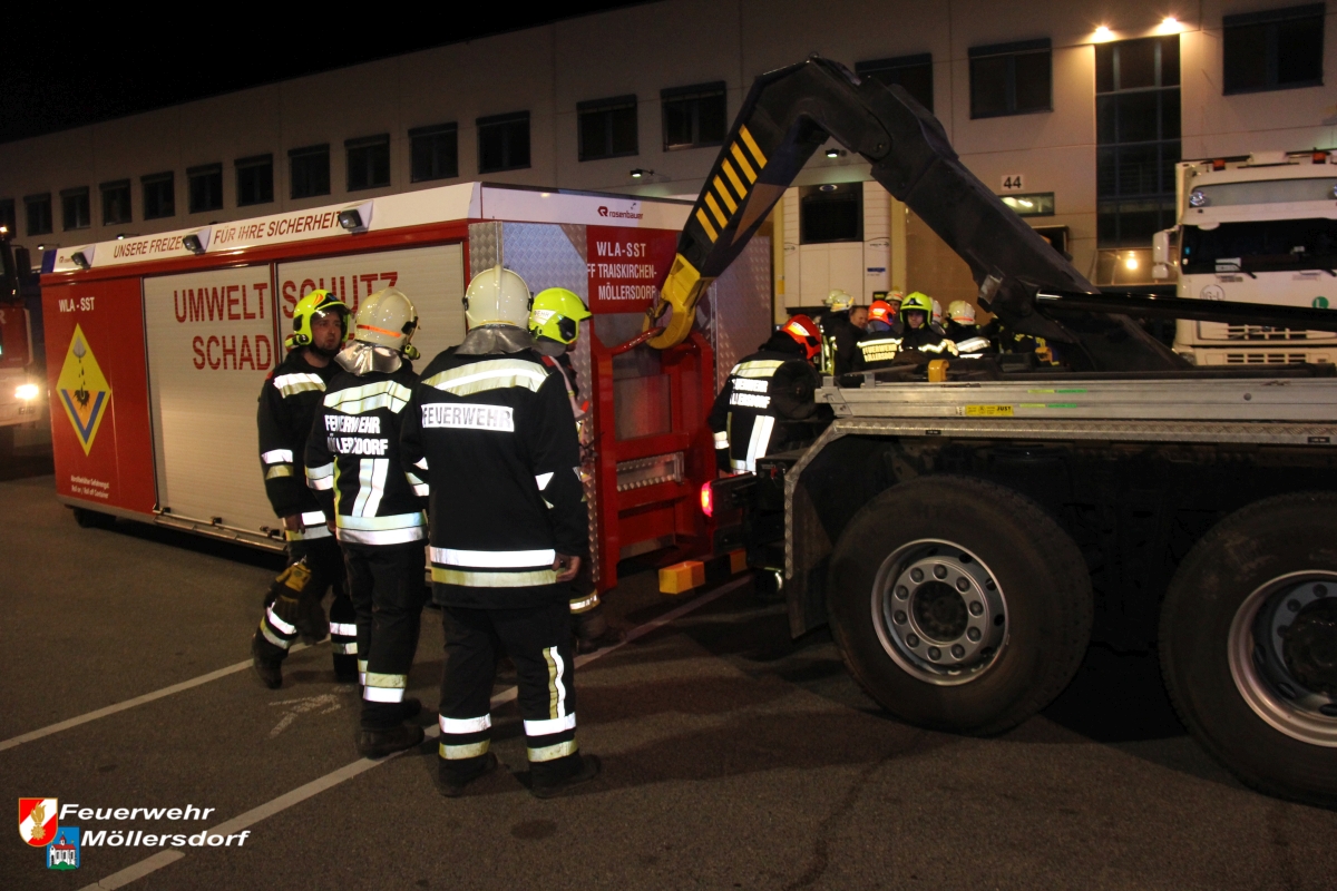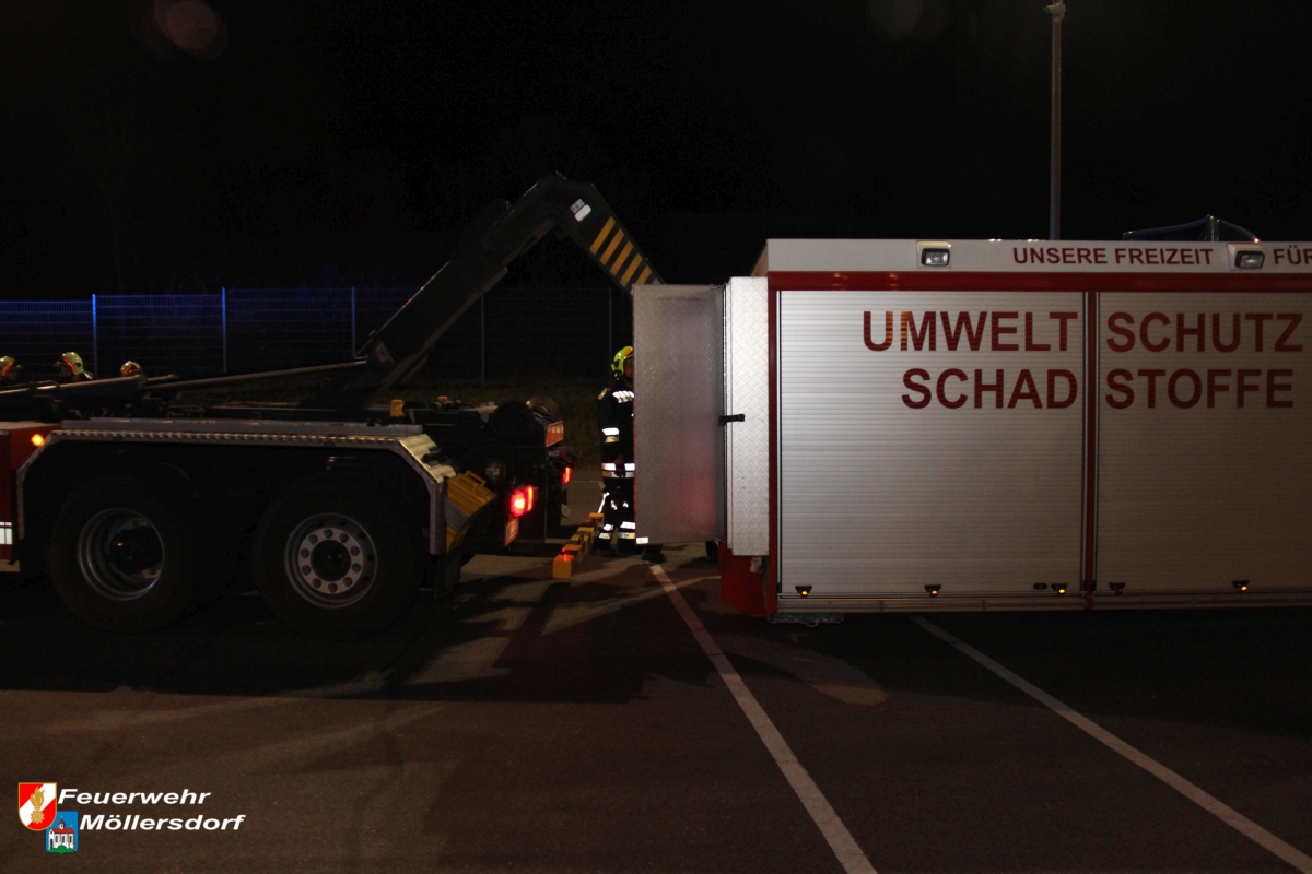 In der Nacht des 29. März, um 01:18 Uhr wurde die Freiwillige Feuerwehr Möllersdorf, über die BAZ Baden, durch die FF Tribuswinkel zu einem Schadstoffeinsatz ins Betriebsgebiet Traiskirchen-Süd angefordert.