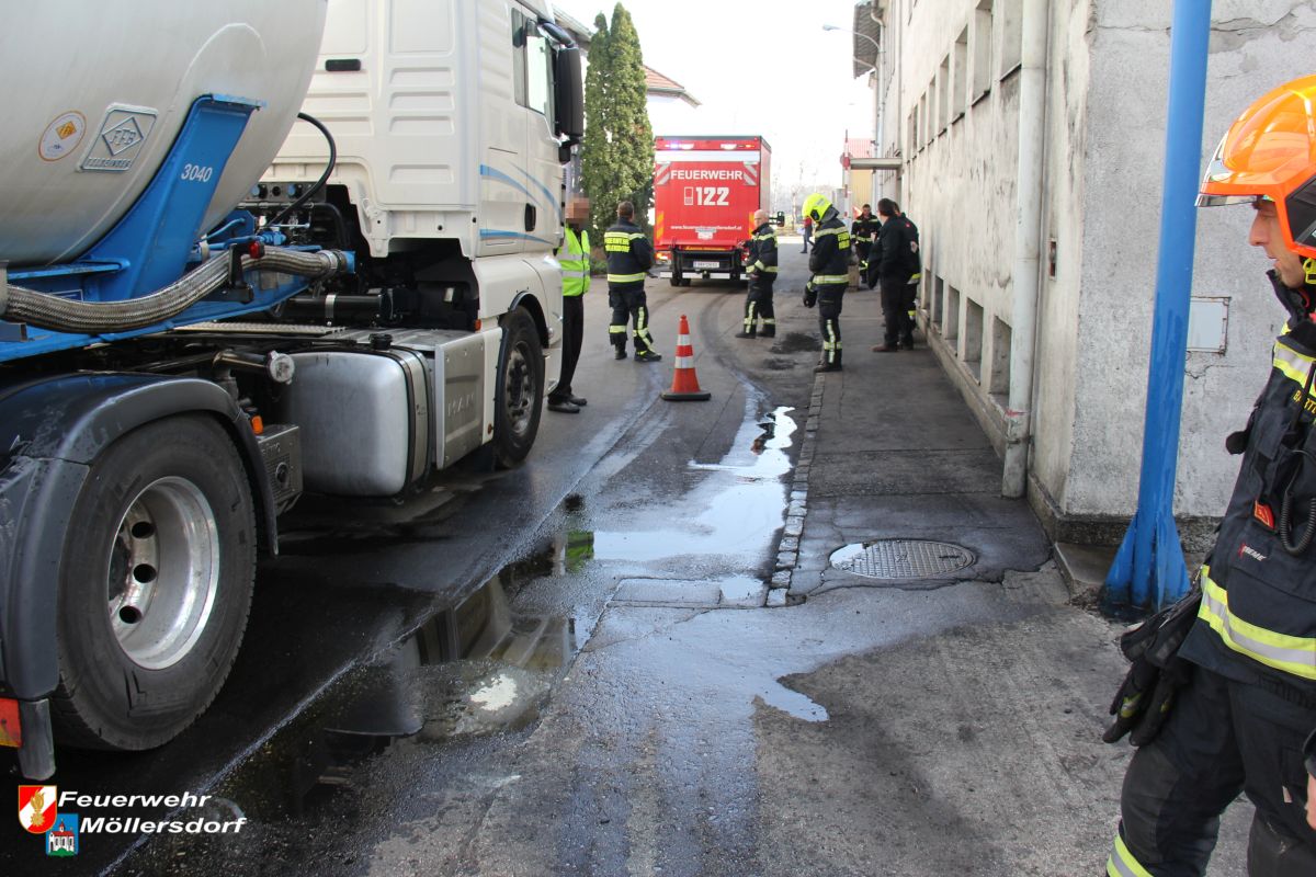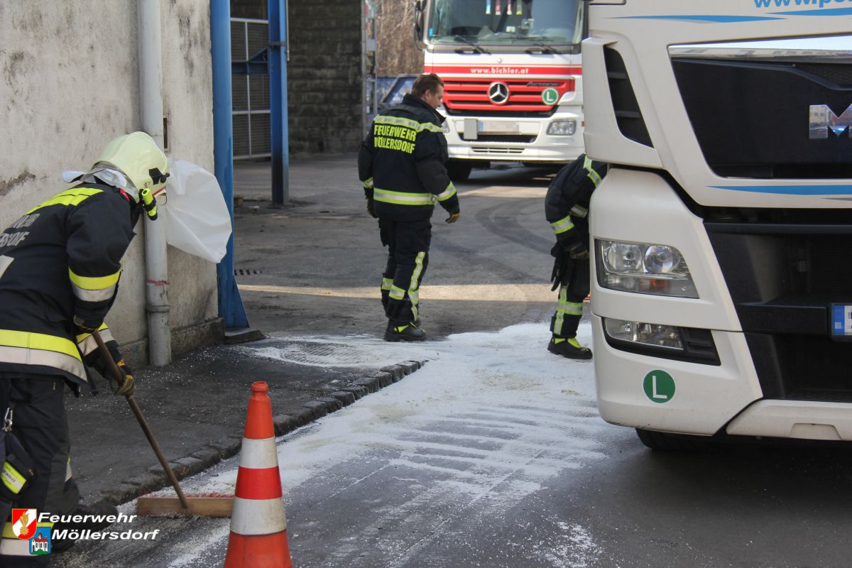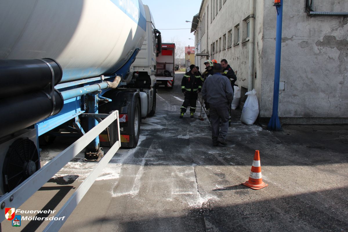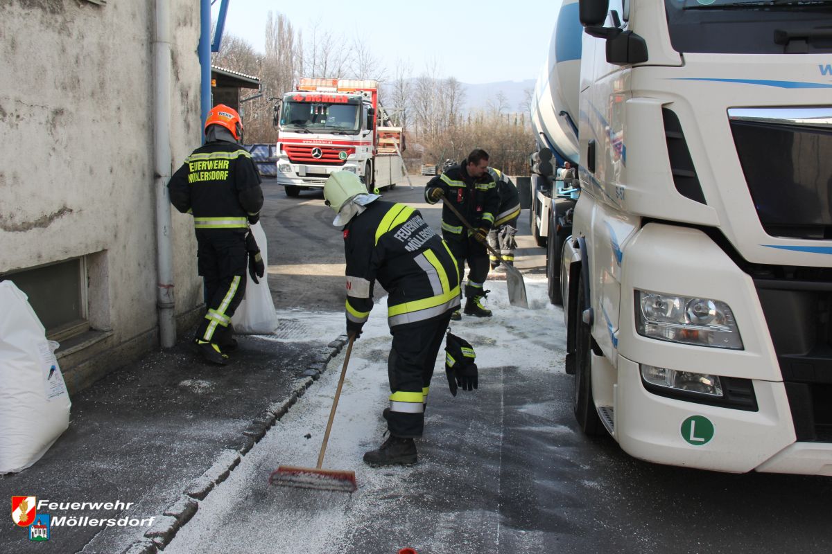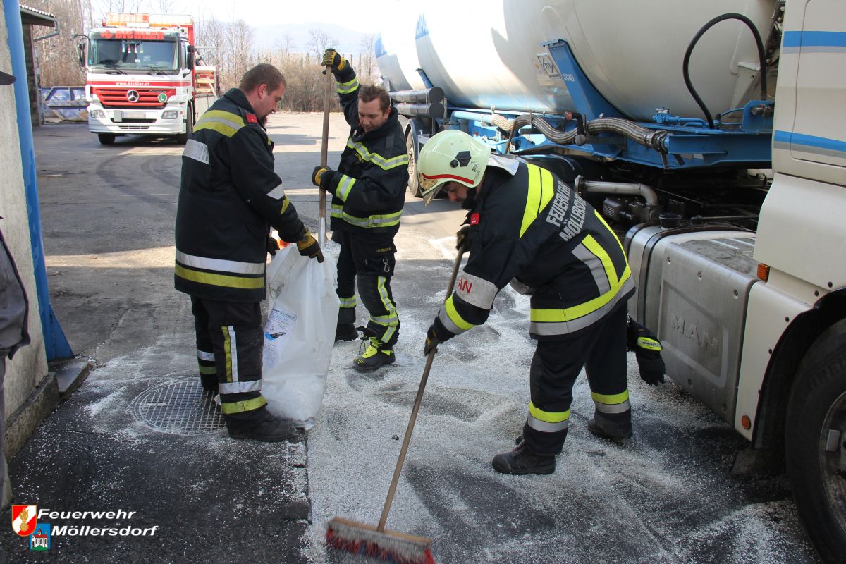 "Schadstoffeinsatz in der Gußwerkstraße - Hydrauliköl ausgelaufen" so lautete die erste Alarmierung am 13. März um 12:13 Uhr für die Kammeraden der Freiwilligen Feuerwehr Möllersdorf. Kurze Zeit später konnte bereits mit dem ersten Auto - dem Rüstlöschfahrzeug (RLFA) - zum Einsatzort ausgerückt werden. Sofort stellte sich heraus, dass der Hydraulikschlauch eines LKWs geplatzt war und bereits mehrere Quadratmeter Fahrbahn mit Hydrauliköl verschmutzt waren.