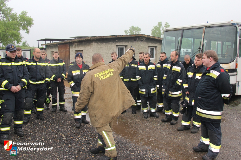 In den Morgenstunden des 26. April 2014 ging es für einige Atemschutzgeräteträger der FF Möllersdorf sowie der FF Brunn am Gebirge Richtung Wien - genauer gesagt zum Übungsgelände des Wiener Flughafens um dort ihre Fertigkeiten beim Atemschutzeinsatz mit realen Bedingungen (Heißausbildung) unter Beweis zu stellen und zu perfektionieren. Ziel dieser Ausbildung war es, die Entwicklung eines Brandgeschehens zu demonstrieren und das richtige Verhalten bei Bränden zu üben sowie taktisch richtig bei Personensuchen im Wohnbereich vorzugehen.